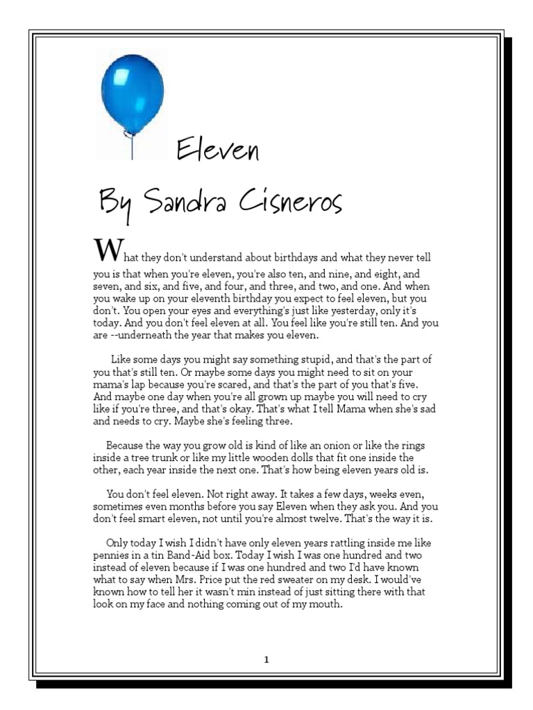 It means sadness it means waiting. And when you wake up on your eleventh birthday you expect to feel eleven but you. She was an acclaimed writer of short stories when Sandra Cisneros was born in 1954 and she had been dead.